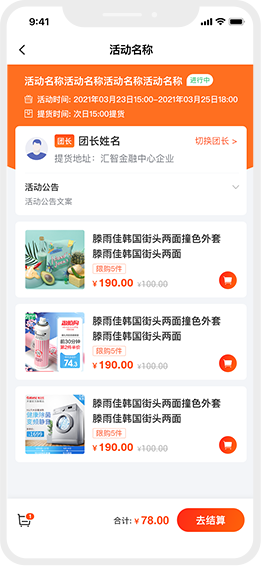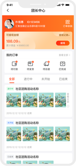 客户通过小程序就可以购买商品,团长也可通过手机管理订单