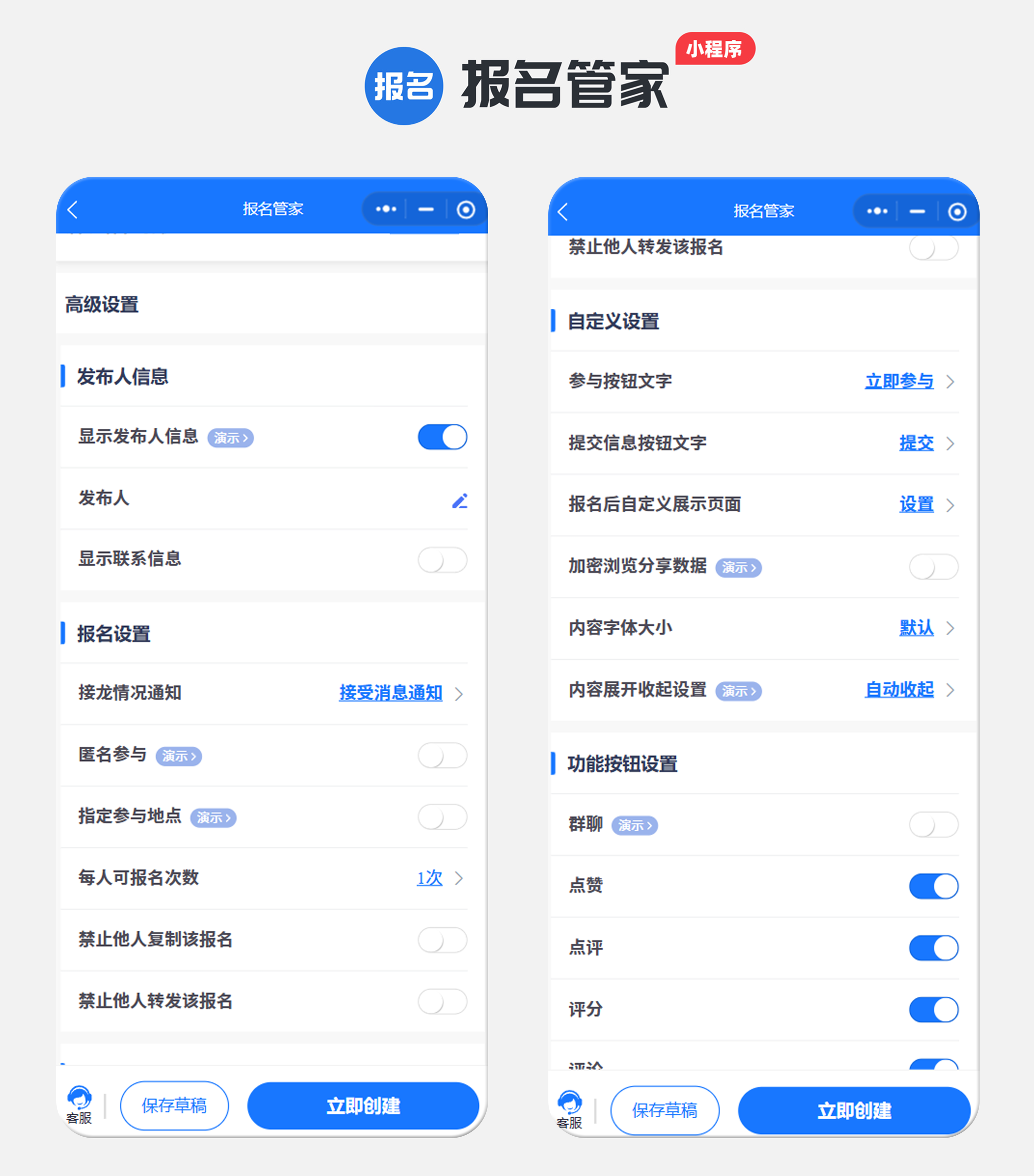 设定清晰的报名开始与截止时间,让活动周期一目了然。在“高级设置”中设置每人报名次数,保护活动隐私性;选择是否显示发布人、是否允许匿名参与、是否开启消息通知等。这些设置确保了活动既能灵活适配各种场景,又能有效管理参与流程。