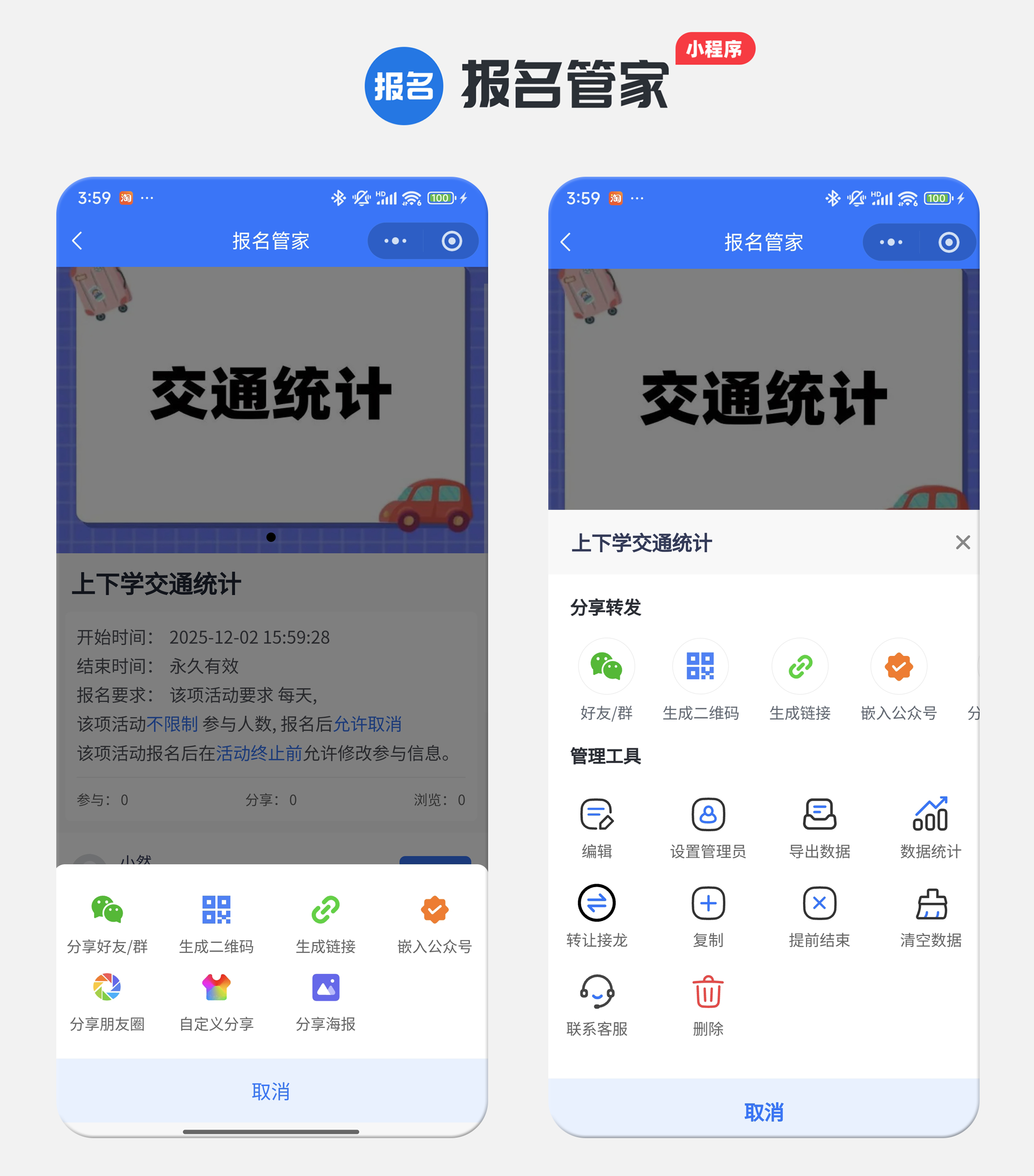 所有内容确认无误后,点击发布即可。在管理页面,找到“分享转发”功能,便能生成唯一的专属活动入口。该入口形式灵活,便于您嵌入通知文档或直接分享至社群,参与者点击即可快速报名。自带链接,生成二维码,海报等多种分享形式,也能分享到朋友圈,集成到公众号。